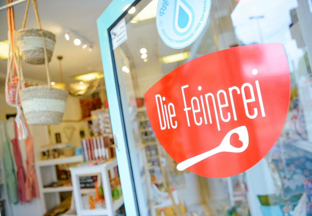 Durchschreitet man die türkis gestrichene Tür und tritt ein in die „Feinerei“, fühlt man sich wie im Urlaub. Flämische Motive auf Stoffen, Geschirrtücher, die an die Toskana erinnern, Salz aus Island, dem Auge wird sehr viel geboten. Man merkt die liebevolle Handschrift der Inhaberin, die als gelernte Schauwerbegestalterin ihre Talente bei der Dekoration eingebracht hat. Auch der Gaumen kommt nicht zu kurz, es ist ein Laden für alle Sinne.