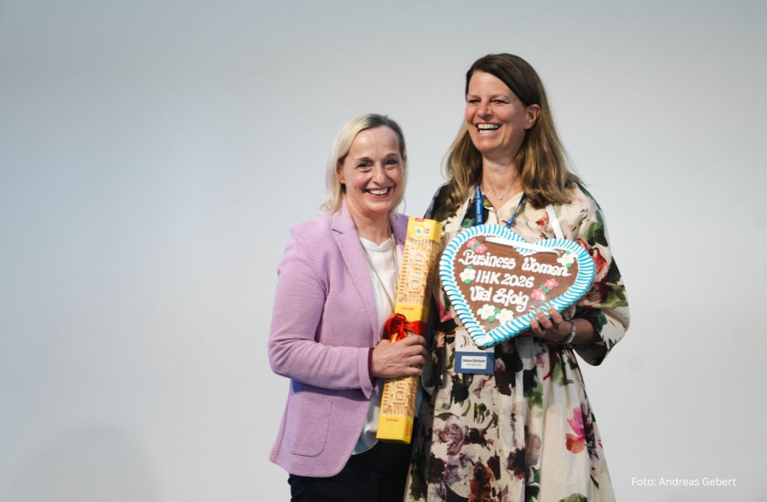 Blieb noch das Geheimnis um das Netzwerktreffen im kommenden Jahr 2026 zu lüften. Karin Elsperger, Vizepräsidentin der IHK für München und Oberbayern, übergab den Staffelstab beziehungsweise ein großes, echt bayerisches Lebkuchenherz an Maike Bielfeldt, Hauptgeschäftsführerin der IHK Hannover. Im Austausch nahm Elsperger die für Hannover typischen Bahlsen-Kekse in Empfang – Herz trifft Keks. Unbedingt jetzt schon vormerken: In den IHKs ehrenamtlich aktive Unternehmerinnen sind zum 11. DIHK-Netzwerktag der Business Women IHK am 1./2. Oktober 2026 in der niedersächsischen Landeshauptstadt herzlich eingeladen.