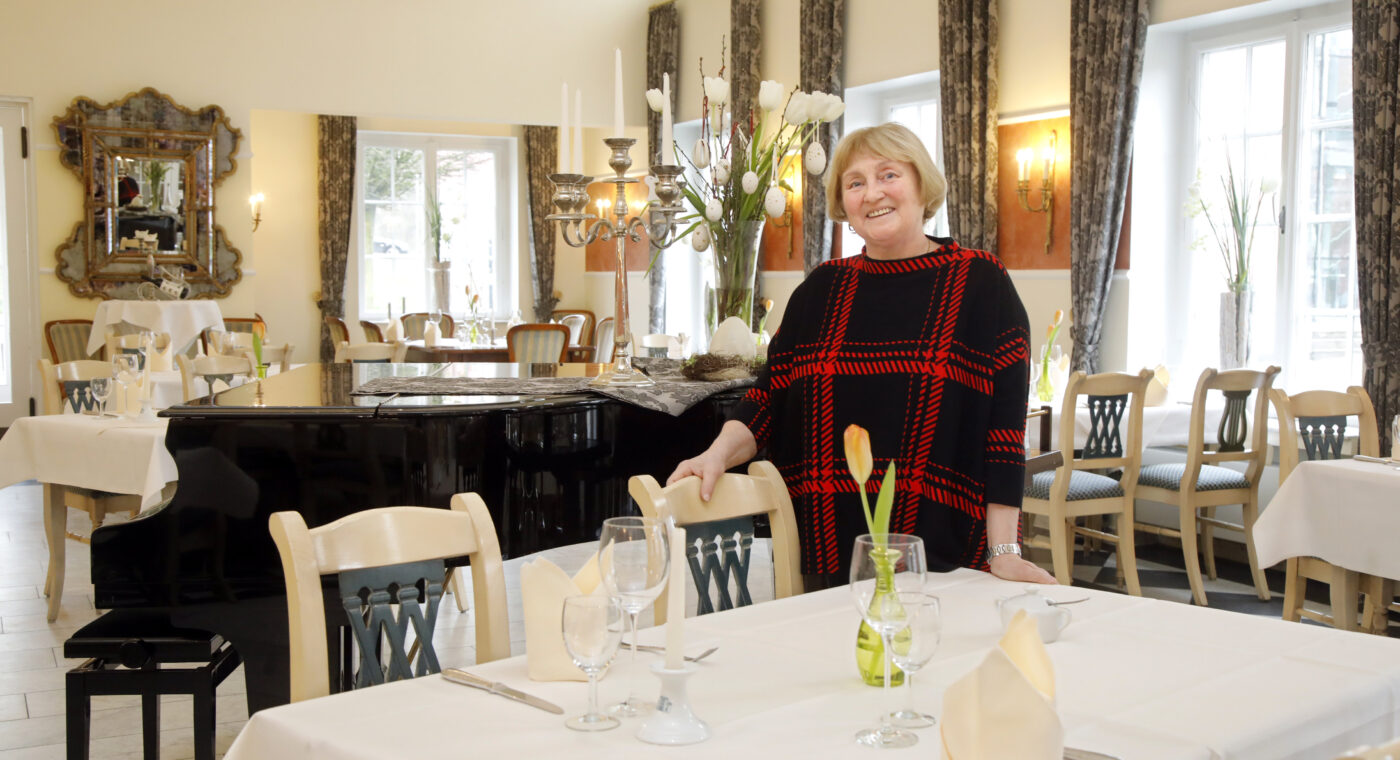 Alle freuen sich darauf, viele Besucher aus nah und fern bewirten zu können. Sonntags herrscht großer Trubel, besonders bei schönem Wetter. Man merkt, die Menschen möchten nach einer so langen coronabedingten Auszeit wieder etwas erleben, sie möchten genießen und wieder mit ihren Lieben zusammen sein. Auch Heidemarie Christel Steinke kann es kaum erwarten: „Die großen Feierlichkeiten und Partys sollen wieder stattfinden. Das wünsche ich mir so sehr“, entfährt es ihr. Man spürt es sofort: Diese Frau brennt für jede einzelne Besucherin und jeden Besucher. Dabei ist die Leidenschaft der Köchin zu 100 Prozent auf die Geschäftsfrau übergegangen. „Als mein Mann und ich uns vor mehr als 25 Jahren damit beschäftigt haben, unser Restaurant in Hünxe aufzugeben und in Oberhausen dieses wunderschöne, aber damals leerstehende Gebäude mit einer kulinarischen Idee zu füllen, sind wir schon sehr ins Risiko gegangen.“ Doch es geschah etwas Wunderbares: Die Stammgäste von Niederrhein folgten den beiden nach Oberhausen. Hier bieten die stilvollen Säle »Graf Westerholt« und »Prinzensaal« Platz für bis zu 200 Personen, während in der »Ritterstube« gerne kleinere Gesellschaften bis zu 18 Personen verköstigt werden können.