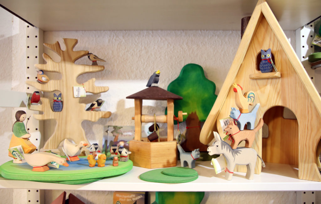 Sie ist immer auf der Suche nach neuen Produkten, kann aber mit den momentanen digitalen Messen nicht viel anfangen: „Ich kann die Sachen nicht anfassen, riechen, fühlen wie ist das, kriege ich Gänsehaut, wenn ich es anfasse? Da gucke ich dann lieber in Ruhe, gemütlich in meine Kataloge.“ Neben Neuheiten ist es für das Geschäft auch wichtig, das Stammsortiment vorrätig zu haben. „Jeder hat so seins. Für uns sind es diese anthroposophischen Geschichten: Ostheimer Krippen und Grimm‘s liegen uns sehr am Herzen, weil wir diese Dinge einfach schön finden und das wollen wir auch pflegen.“