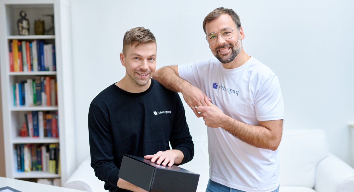 Beide Unternehmer haben aus einer festen Anstellung heraus gegründet – möchten aber in Zukunft ganz für ihr Start-up da sein. „Wir fokussieren uns erstmal auf Onlineshops. Da haben wir zwei Geschäftsmodelle: Entweder kann der Shop bei uns Mehrwegverpackungen kaufen und dann selbst den Rückversandprozess für seine Kunden aufbauen oder wir bieten einen ‚Pay per use‘-Service an“, erklären die beiden Gründer. Beim zweiten System übernimmt rhinopaq die Qualitätskontrolle und auch die Kosten für den Rückversand. „Der Shop hat weniger Risiko, keinen Aufbereitungsaufwand, das machen wir alles.“