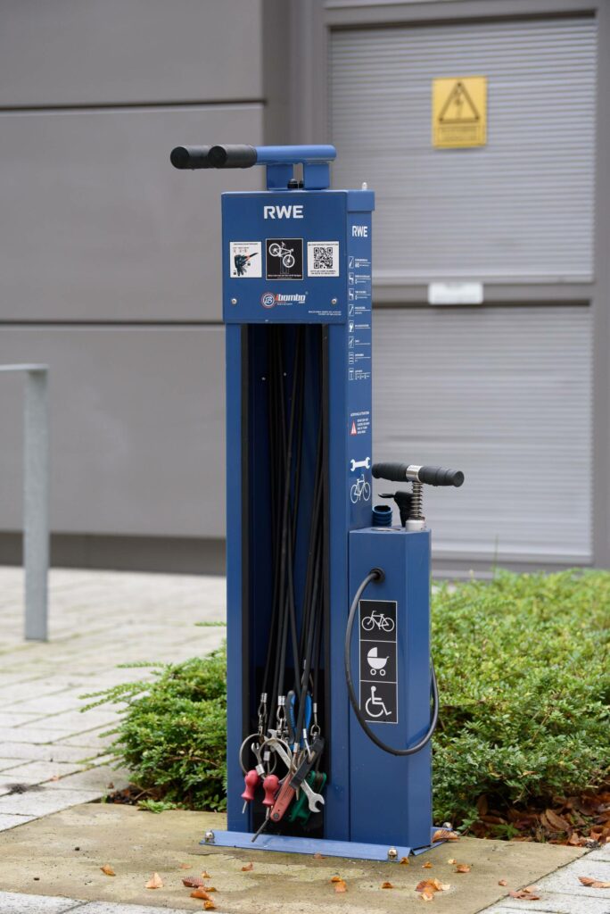 Von Essen-Schönebeck aus benötigt Birgit Hengst rund 20 Minuten bis zu ihrem Arbeitsplatz am RWE-Campus im Nordviertel. „Mit dem Auto bin ich kaum schneller, wenn überhaupt“, bemerkt sie angesichts des Verkehrs auf den Straßen. Sie profitiert vom Radschnellweg Ruhr (RS1), der sie quasi bis vors Büro führt. Derzeit ist der RS1 von Mülheim nach Essen befahrbar. Künftig soll er das Ruhrgebiet von Duisburg bis Hamm verbinden. Der RWE-Campus verfügt schon heute über die passende, fahrradfreundliche Infrastruktur: Stellplätze in jeder Tiefgarage, Ladestationen für E-Bikes, Reparatursäulen mit Werkzeug, Duschen für frische Mitarbeitende und Trockenräume für durchnässte Kleidung.