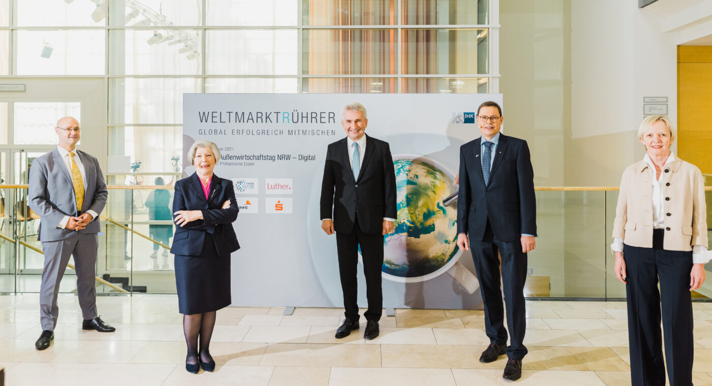 Die virtuell durchgeführte Konferenz wurde unter dem Motto „Weltmarktrührer – global erfolgreich mitmischen“ am 23. September 2021 live aus der Philharmonie in Essen übertragen. Eröffnet wurde sie durch Jutta Kruft-Lohrengel, Präsidentin der IHK zu Essen und Vizepräsidentin von IHK NRW, gemeinsam mit IHK NRW Präsident Ralf Stoffels sowie NRW-Wirtschaftsminister Prof. Andreas Pinkwart.