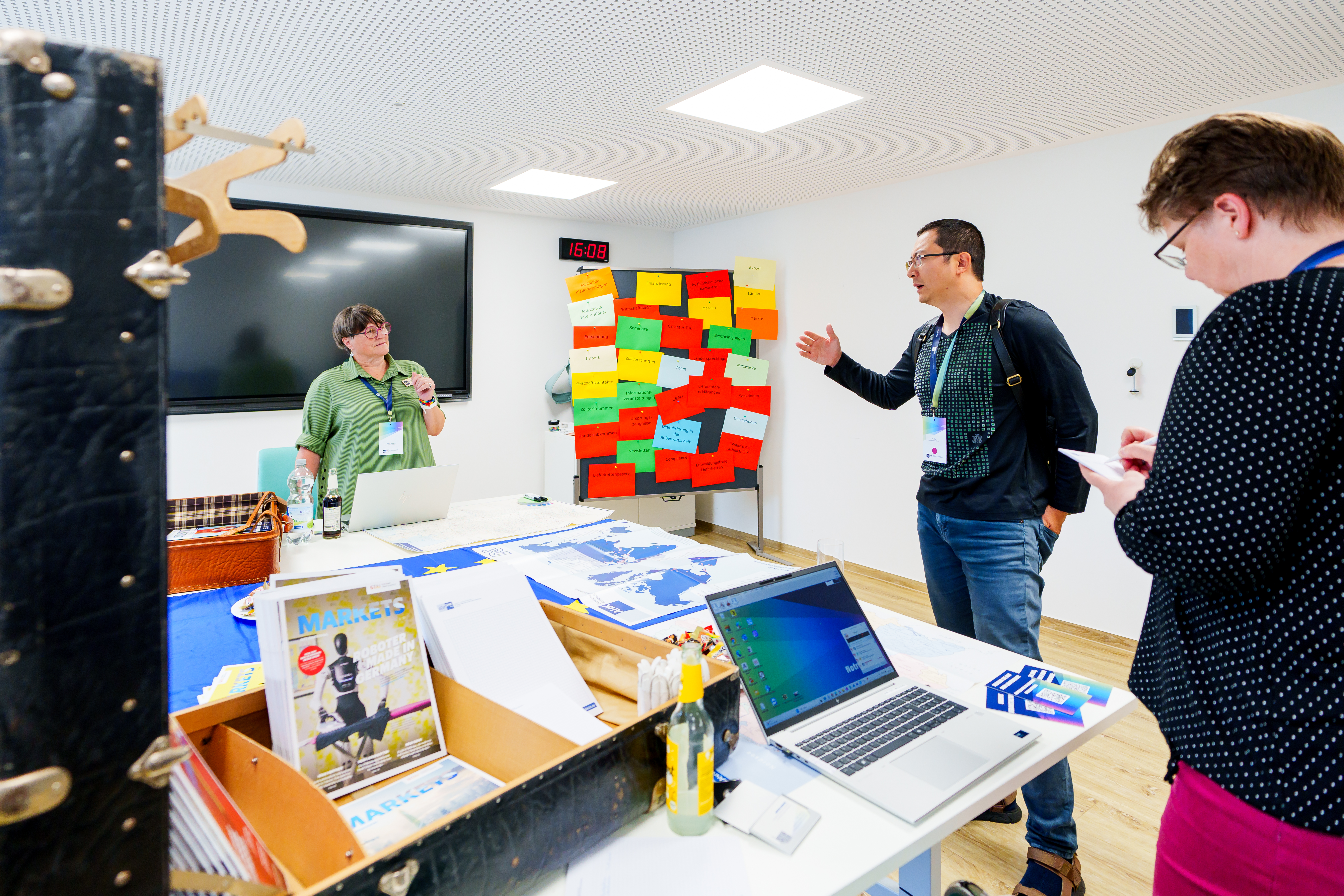Es wurde gefragt, diskutiert, gelacht und geworfen: Von Nachfolge über Innovation bis Handel, Standort und Ausbildung gab es bei unserem Geschäftsfeld Branchen & International viel zu entdecken. Wer wollte, startete per Dartpfeil direkt ins Gespräch. Koffer voller Lesestoff, bunte Flaggen und persönliche Gespräche luden ein, die Vielfalt unserer Themen kennenzulernen – von internationalen Märkten bis zu Ausbildung und Inklusion. Ein Tag voller Austausch, neuer Impulse und spannender Begegnungen.