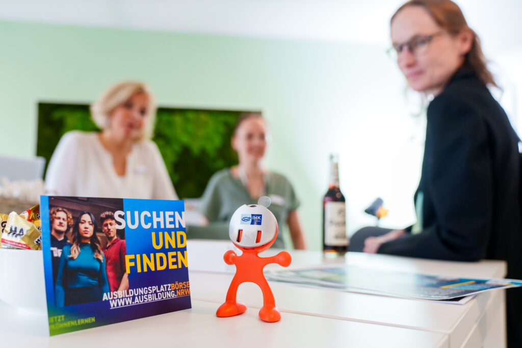 Informativ und interaktiv – so lautete das Motto des Geschäftsfelds Bildung & Prüfung am Tag der offenen Tür. Das Team verwandelte seine Räume in eine Art Prüfungserlebniswelt: Live eine simulierte Prüfung am PC testen, vor einem Prüfungsausschuss Fragen beantworten und zum Abschluss ein Prüfungszeugnis erhalten. Nicht nur das sorgte für Aha-Momente. Großes Interesse galt auch dem Weg zu einer ehrenamtlichen Prüfertätigkeit, der Arbeit im Bereich internationale Fachkräfte, den verschiedenen Prüfungsabschlüssen und Weiterbildungsmöglichkeiten.