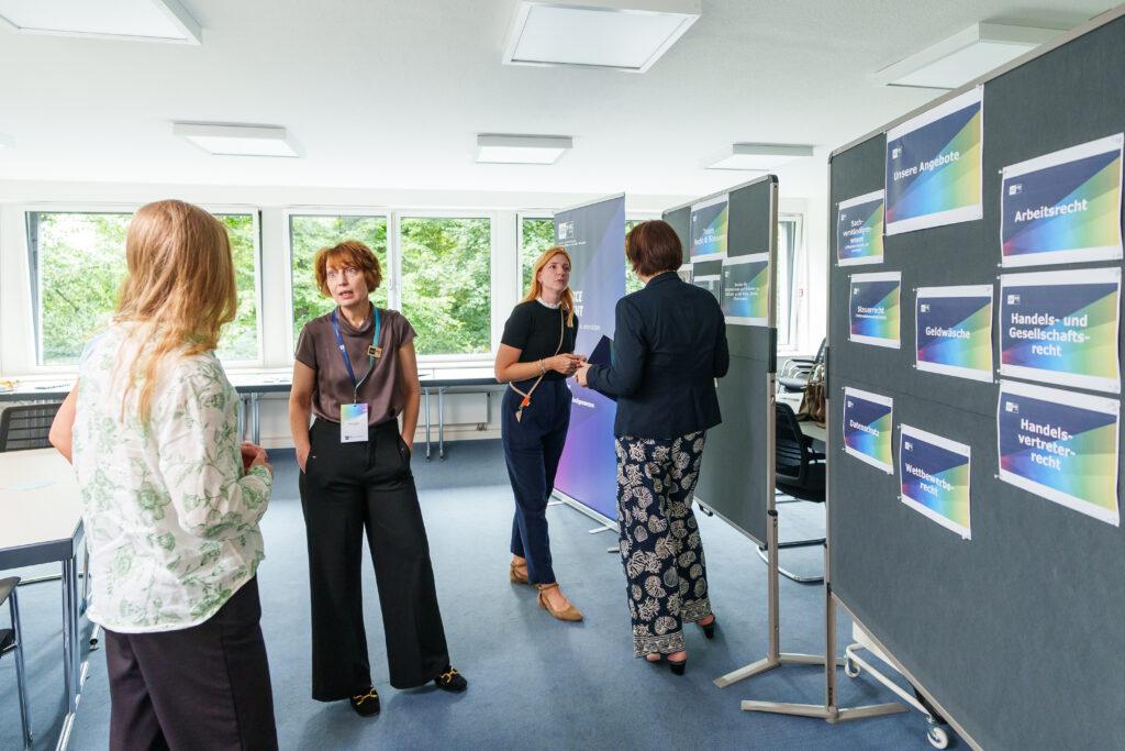 Unsere Mitarbeitenden aus dem Geschäftsfeld Service & Recht informierten über unseren Service und unsere zentralen Beratungsthemen für Unternehmen und Gründerinnen und Gründer aus der Region. Ausgetauscht wurde sich hier über Arbeitsrecht, Datenschutz und Geldwäsche sowie weitere rechtliche Themen. Besonders geschätzt wurde von unseren Gästen die Möglichkeit, individuelle Fragen direkt vor Ort stellen zu können.