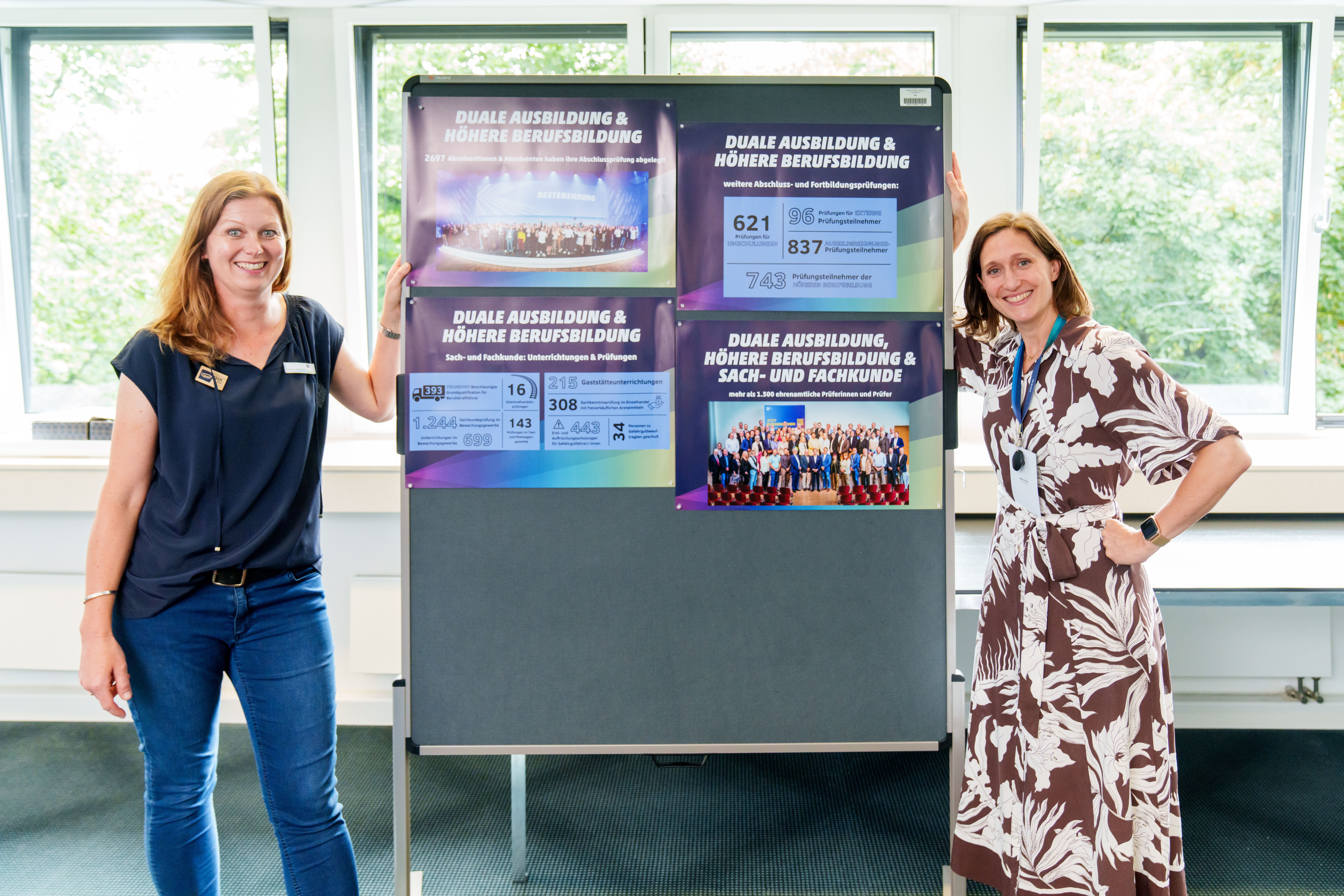 Informativ und interaktiv – so lautete das Motto des Geschäftsfelds Bildung & Prüfung am Tag der offenen Tür. Das Team verwandelte seine Räume in eine Art Prüfungserlebniswelt: Live eine simulierte Prüfung am PC testen, vor einem Prüfungsausschuss Fragen beantworten und zum Abschluss ein Prüfungszeugnis erhalten. Nicht nur das sorgte für Aha-Momente. Großes Interesse galt auch dem Weg zu einer ehrenamtlichen Prüfertätigkeit, der Arbeit im Bereich internationale Fachkräfte, den verschiedenen Prüfungsabschlüssen und Weiterbildungsmöglichkeiten.