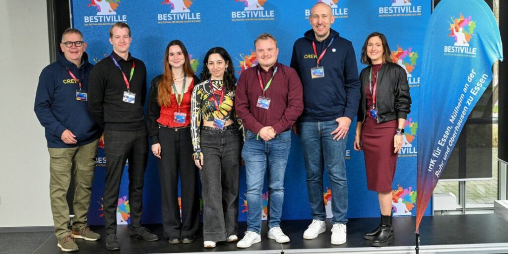 Festivalfeeling in der Stadthalle Soest: Welcome to BESTIVILLE! Das Lineup: 124 Auszubildende aus NRW – die besten in ihrem Ausbildungsberuf. Sie sind heute (Freitag, 14. November 2025) nicht nur für ihre hervorragenden Leistungen in den Abschlussprüfungen geehrt worden – sie wurden gefeiert! Dafür hat die IHK Arnsberg die Landesbestenehrung, die abwechselnd jährlich von einer der 16 IHKs in NRW ausgerichtet wird, unter dem Motto „BESTIVILLE – Das Festival der besten Azubis aus NRW“ in ein Festival verwandelt. In der Stadthalle Soest erwarteten die Azubis DJs, Streetfood, eine Chillout-Lounge, Musik von den Fascinating Drums sowie Gentleman DEE und vieles mehr. Als Moderatoren auf der Bühne: das bekannte EinsLive-Radio-Duo Michael Imhof und Olli Briesch.